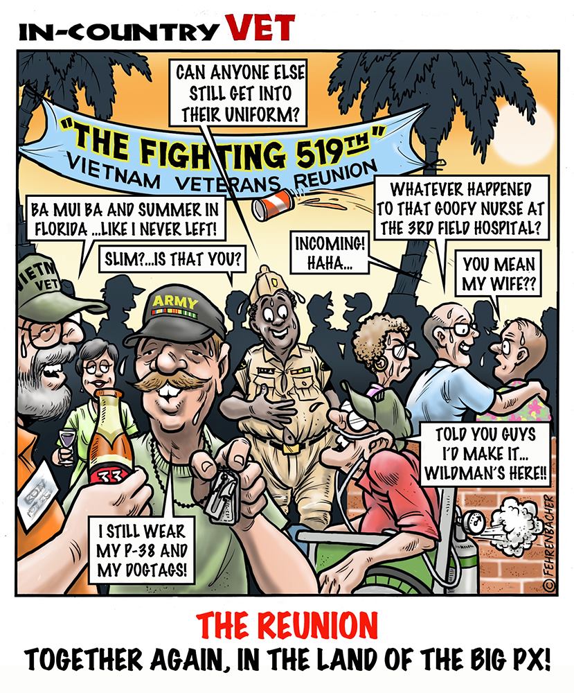 Phil enlisted in the Army in 1965 where he served for years in Vietnam. He became a graphic designer and has worked for the state of Oregon for 26 years. He retired in 2003 and started the Cartoon "In-Country". The cartoons reflect his experiences during his tour of duty in South Vietnam.